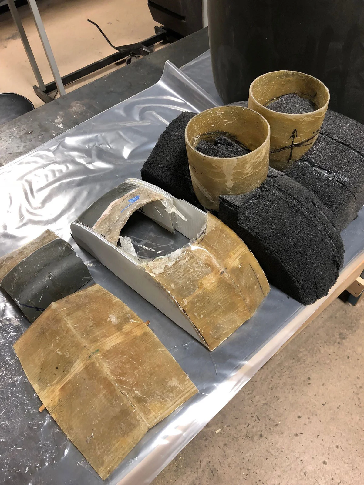 The AH-1 Cobra was lifted with a crane from an elevated concrete and stone platform onto blocking for treatment. Paint samples were taken and prepared for cross sectional analysis to determine the sequence of previous paintings and restorations. Nesting materials were removed from internal engine compartments and cavities in the helicopter. All openings such as the air intakes and openings around the rotor mast were then sealed using custom fabricated fiberglass panels. These panels were adhered using existing hardware in conjunction with silicone caulking where necessary.